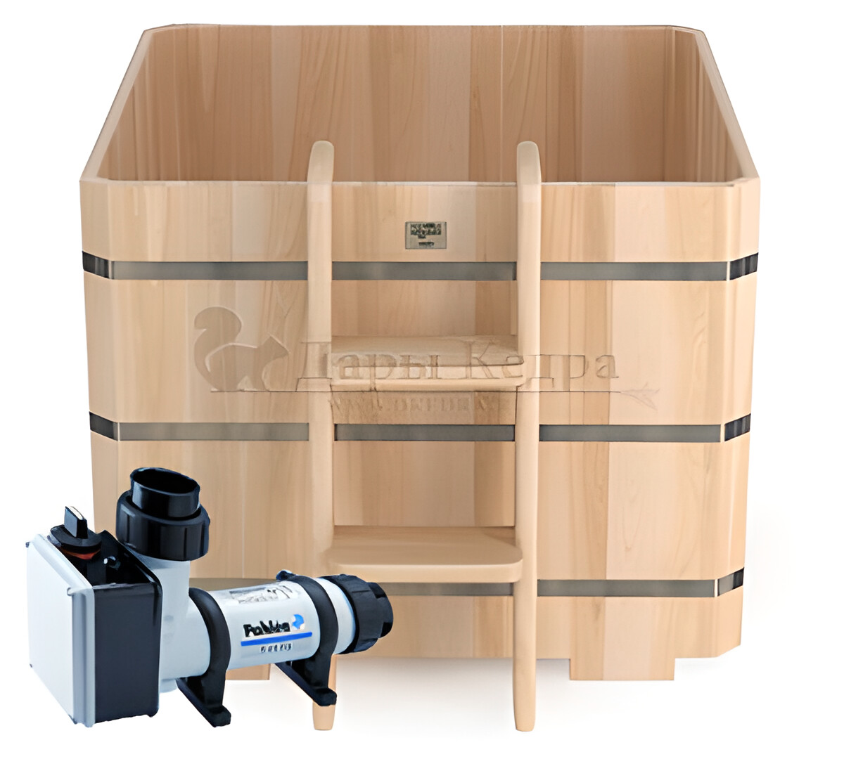 • Прямоугольная купель для бани из кедра Представляет собой герметичную емкость для воды из кедра, которая предназначена для отдыха и охлаждения тела после процедур парения. Ширина прямоугольной купели равна ширине стандартных дверных проемов (78 см), поэтому занести в помещение ее можно в собранном виде. Благодаря прямоугольной форме купель хорошо впишется в угол помещения. Так же ее можно установить на улице. Прямоугольная купель оснащена лавочками, приставной и внутренней лестницей из кедра. Обручи из нержавеющей стали плотно прилегают к изделию, что позволяет равномерно распределить нагрузку воды и сохранить форму во время эксплуатации. При правильном уходе купель для бани не рассыхается и не подвергается гниению. При взаимодействии древесины кедра с водой активируются эфирные масла и фитонциды, благодаря чему организм насыщается полезными веществами.